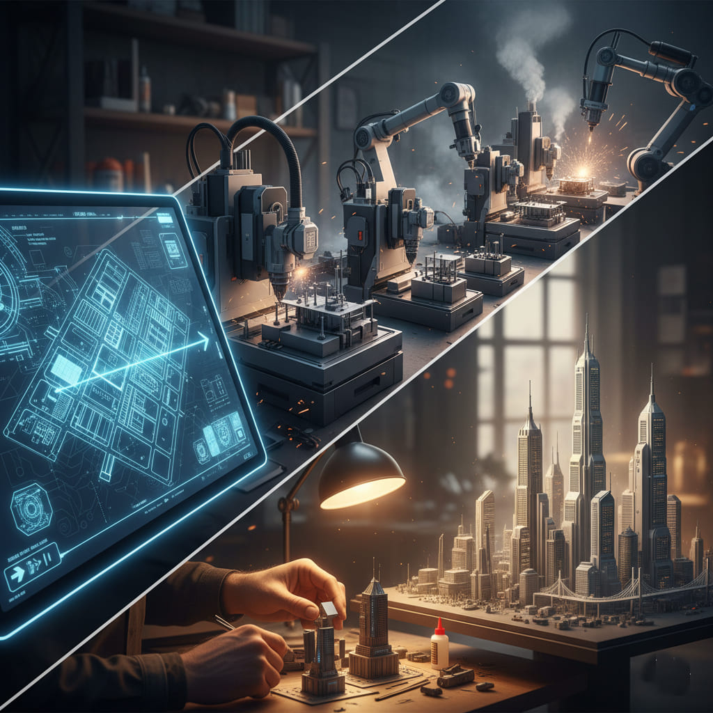 Our core philosophy is to use the best tool for every job. We seamlessly blend the unerring precision of digital fabrication machines with the irreplaceable soul and skill of the artisan. This synergy is the key to world-class quality, a philosophy we explore in depth in Modern Craft vs. Traditional Handwork in Model Making.